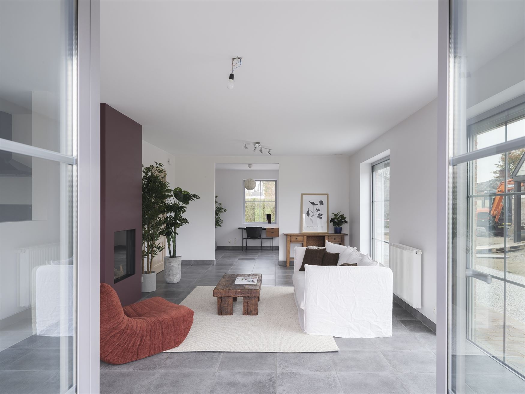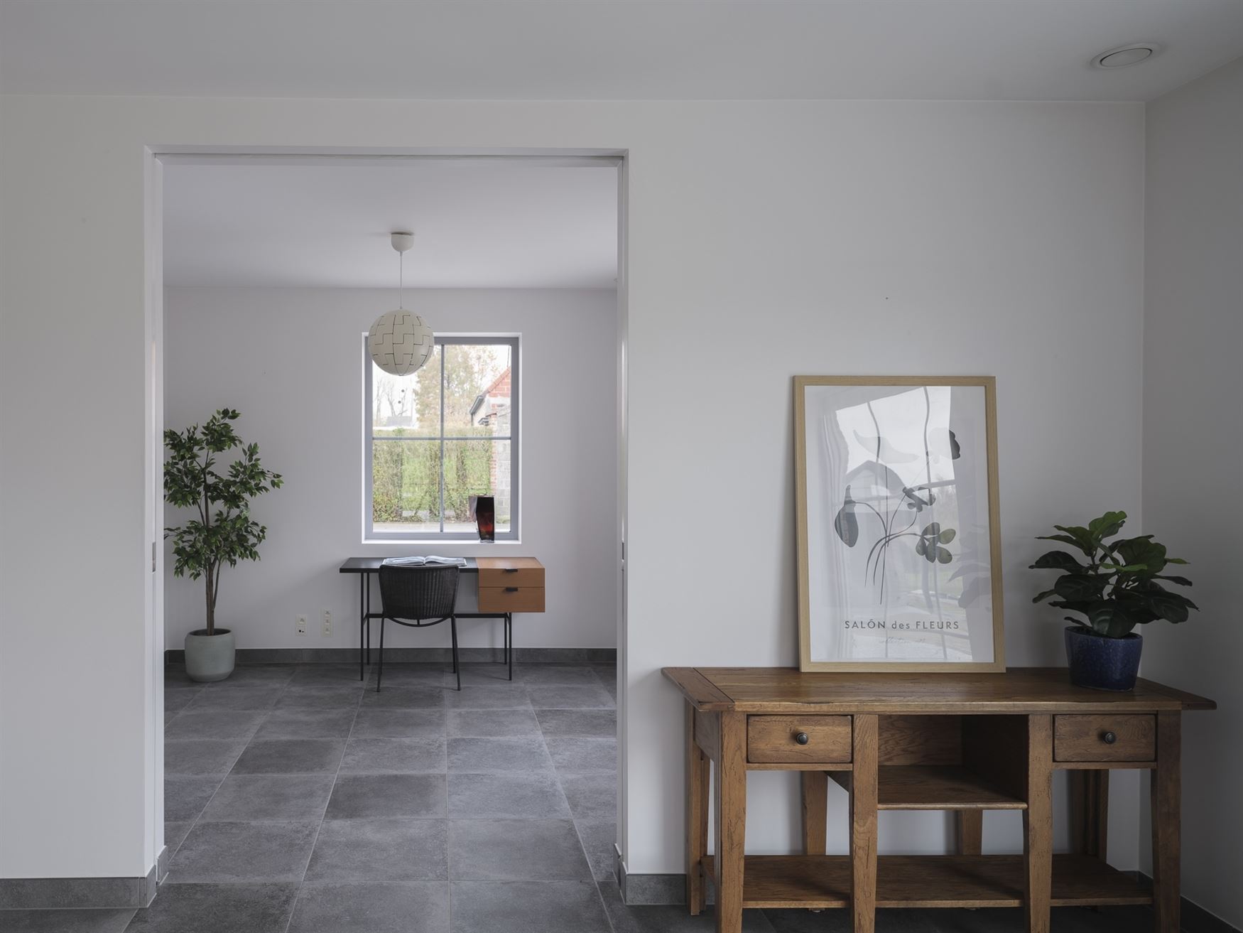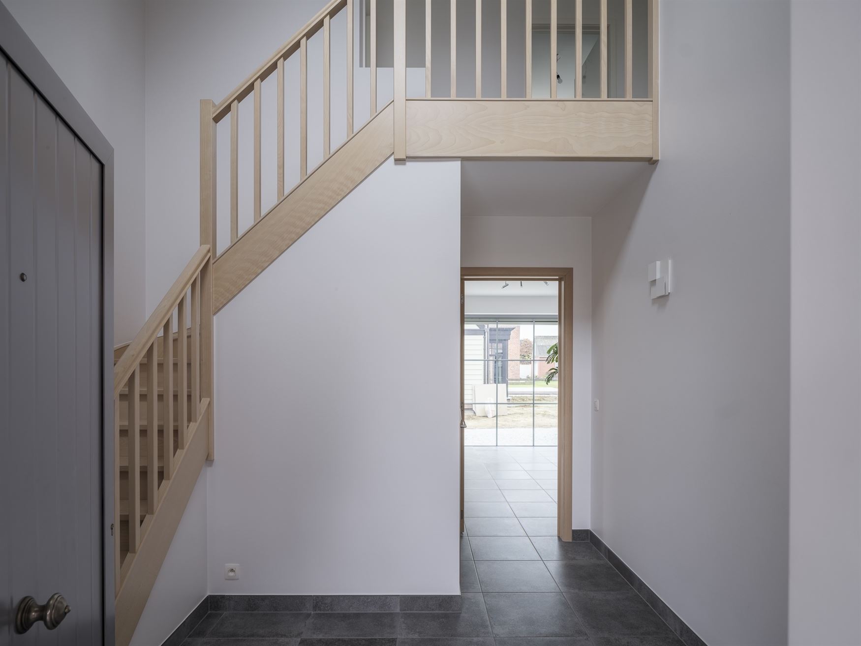 Bij het binnenkomen word je verwelkomd in een ruime inkomhal met apart gastentoilet. De lichte en open leefruimte vormt samen met de volledig uitgeruste keuken het hart van de woning. Grote raampartijen zorgen voor overvloedig natuurlijk licht en een prachtig uitzicht op de aantrekkelijke tuin met groen uitzicht.