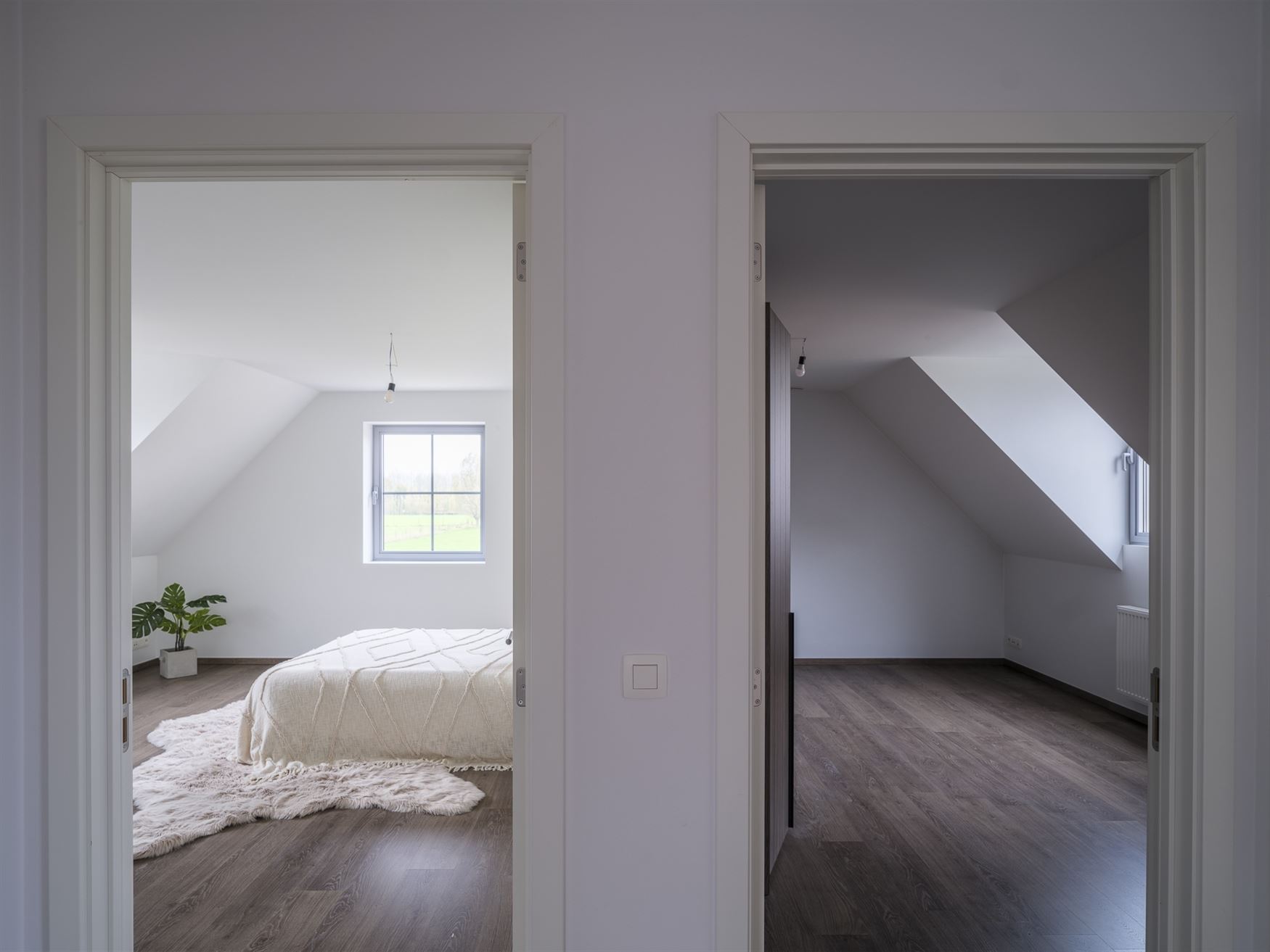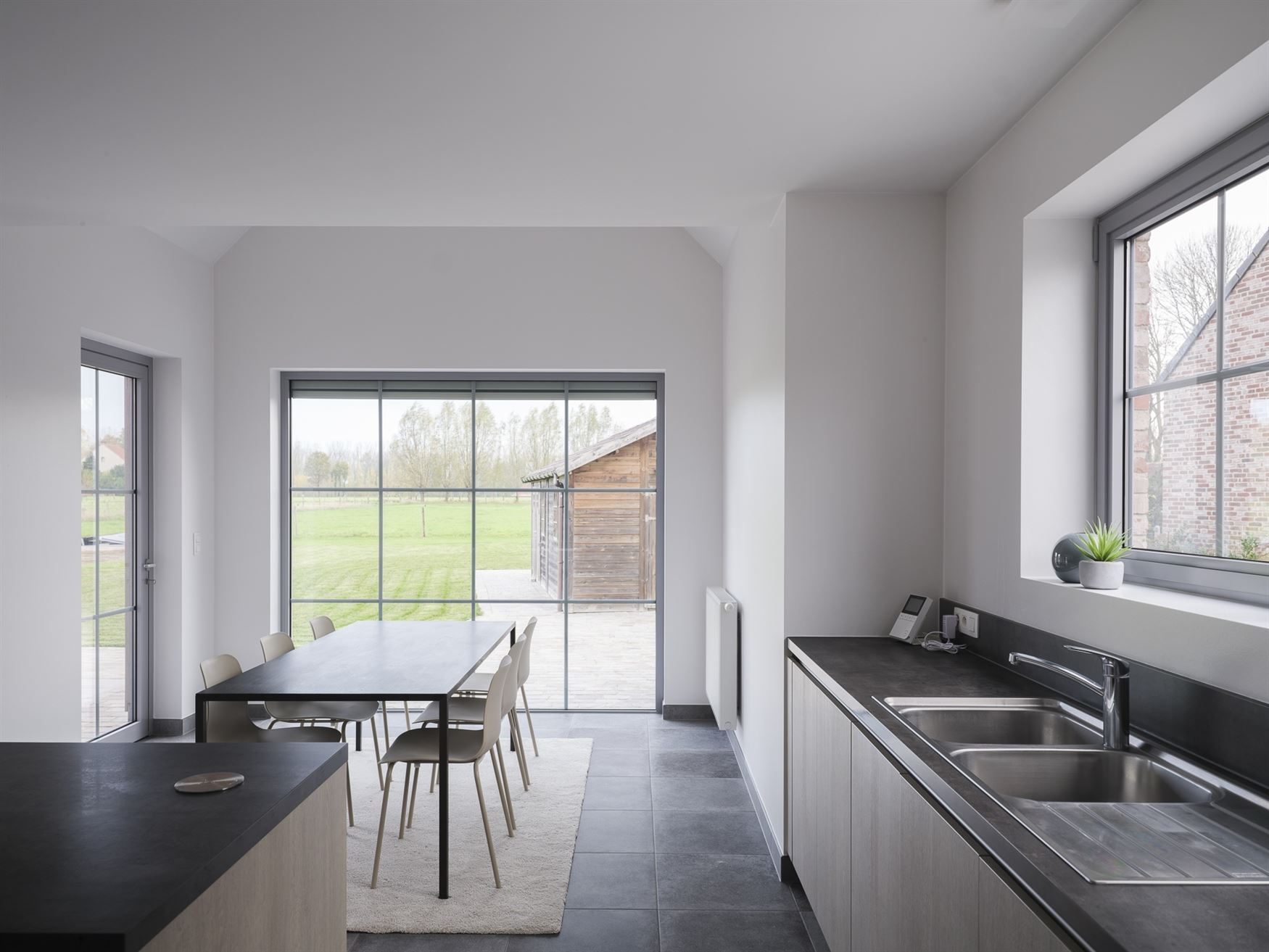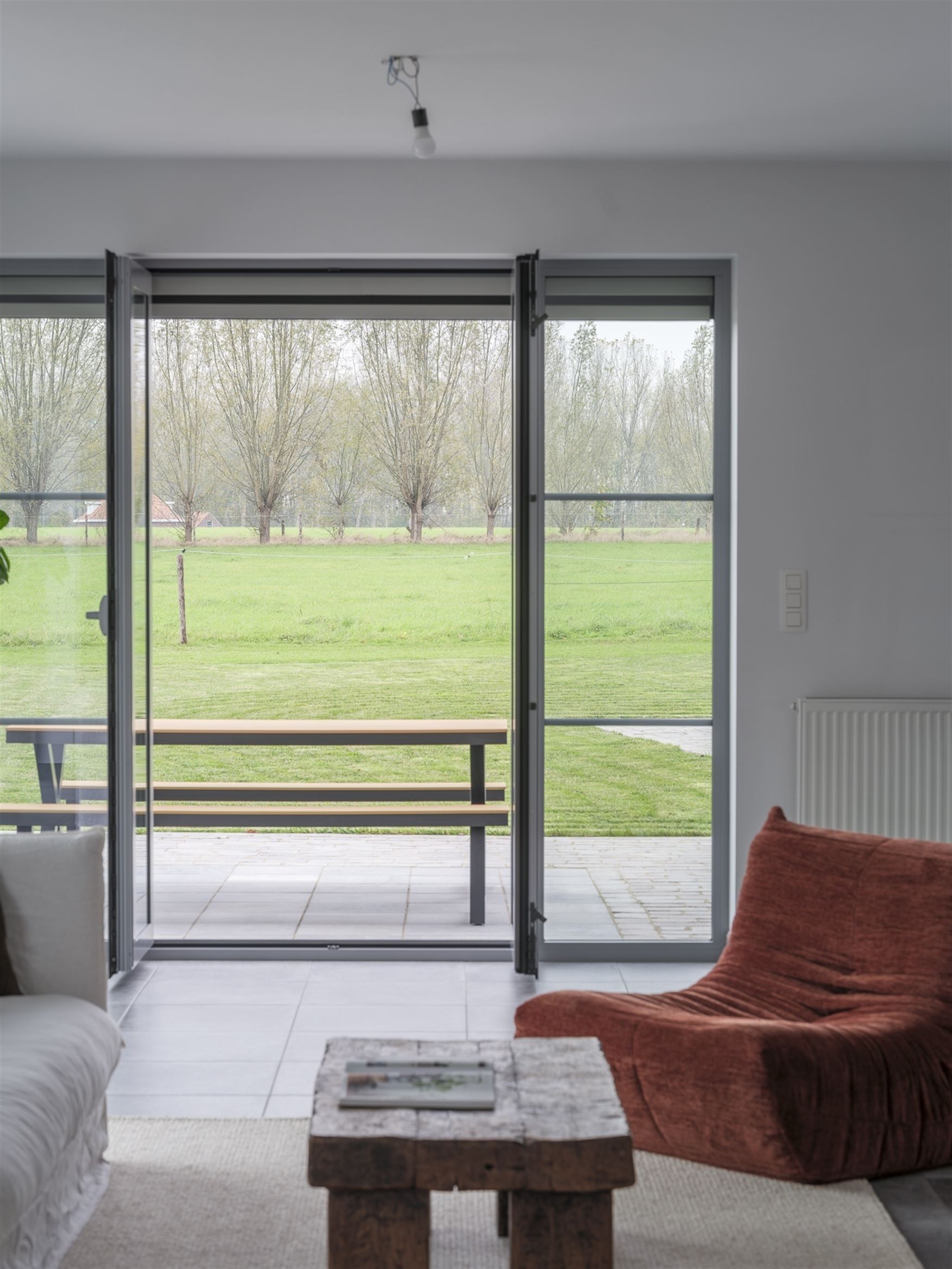 Bij het binnenkomen word je verwelkomd in een ruime inkomhal met apart gastentoilet. De lichte en open leefruimte vormt samen met de volledig uitgeruste keuken het hart van de woning. Grote raampartijen zorgen voor overvloedig natuurlijk licht en een prachtig uitzicht op de aantrekkelijke tuin met groen uitzicht.