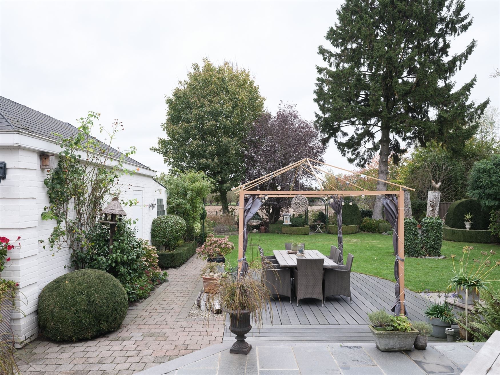 Op de verdieping bevinden zich vier volwaardige slaapkamers en een badkamer, elk met een warme, huiselijke uitstraling. De tuin is een ware oase van rust, met een verzorgde aanleg, groen en voldoende privacy. De ruime oprit en vrijstaande garage zorgen bovendien voor extra comfort.