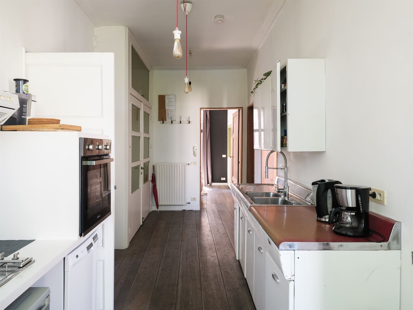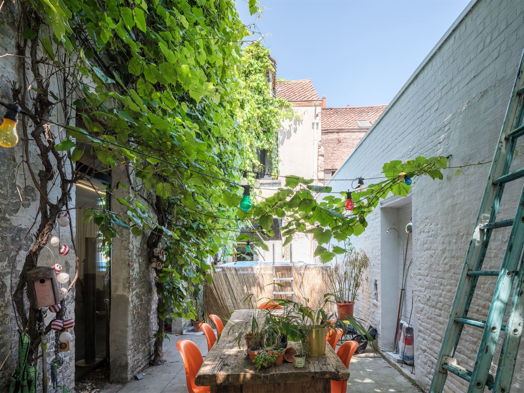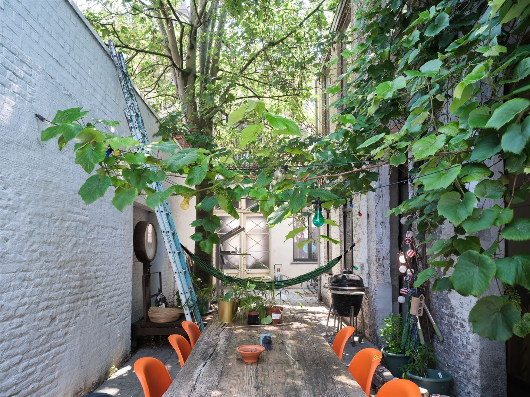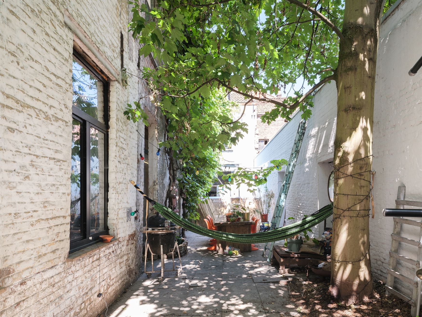 - het woonhuis met ruime stadstuin (gelijkvloers en eerste verdieping achteraan, 3 slaapkamers),