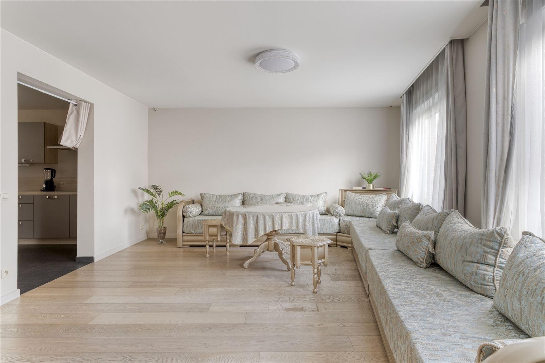 Je komt de woning binnen via de lichtrijke living, die meteen een warm en huiselijk gevoel uitstraalt. Zijdelings bevindt zich de volledig ingerichte keuken, die dankzij de slimme indeling heel functioneel is. Vanuit de keuken heb je toegang tot twee afzonderlijke ruimtes: aan de ene kant een comfortabele slaapkamer, aan de andere kant een praktische berging/wasplaats, ideaal voor extra opslag en huishoudtoestellen.