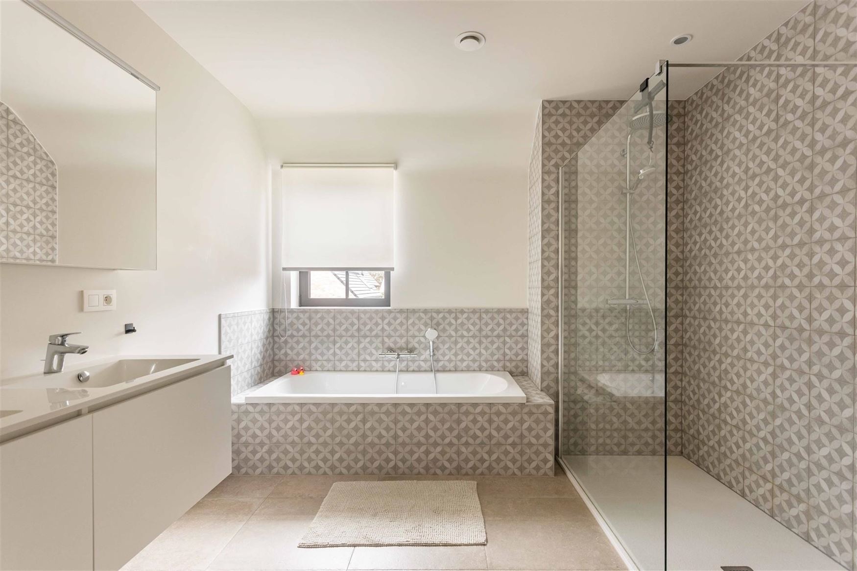 Op de verdieping vinden we drie slaapkamers, waarvan één met een aansluitende dressing. De afgewerkte zolderverdieping doet perfect dienst als hobbyruimte. De badkamer is uitgerust met alle moderne comfort.